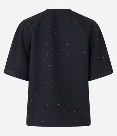 Blusa em Crepe com Detalhe no Ombro e Aplicação de Hot Fix