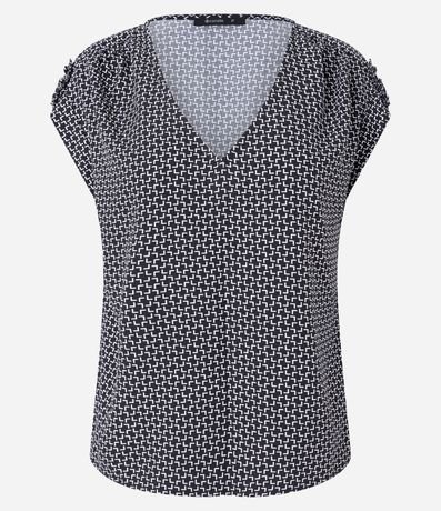 Blusa em Crepe com Detalhe no Ombro e Estampa Geométrico