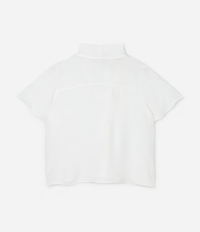 Blusa de crepe sem estampa com mangas curtas e laço na gola.