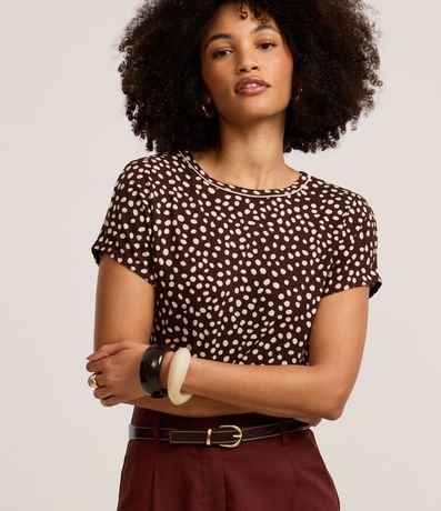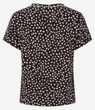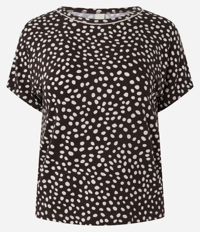 Ref: Blusa de mangas curtas, em viscolycra, com gola redonda e estamparia poá com bolinhas irregulares. Este produto possui viscose certificada m sua composição, além de ter sido produzido através de processos mais sustentáveis, sendo ambientalmente mais responsável.