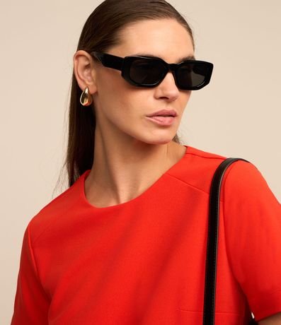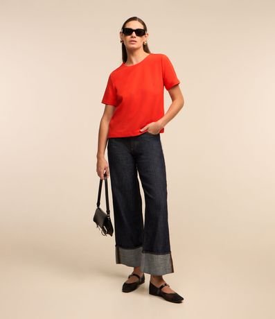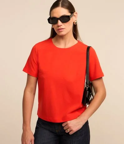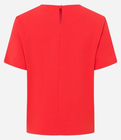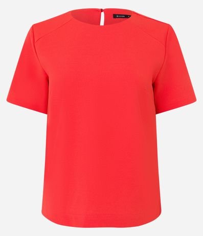 Ref: Blusa feminina, confeccionada em crepe, com gola redonda, mangas curtas e superfície sem estampa.