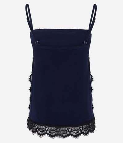 Ref: Blusa em crepe com alças finas e decote quadrado. Possui renda aplicada nas laterais e na barra, trazendo delicadeza e um toque sofisticado ao visual. Modelo leve e versátil para compor produções casuais ou noturnas com elegância.