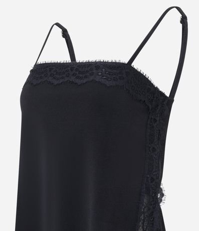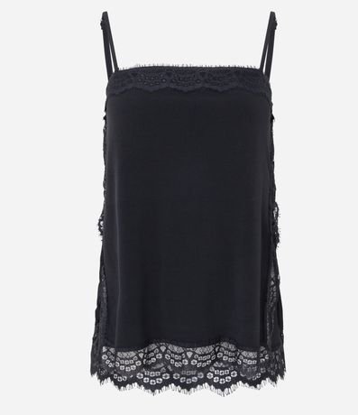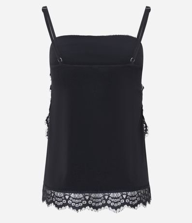 Ref: Blusa em crepe com alças finas e decote quadrado. Possui renda aplicada nas laterais e na barra, trazendo delicadeza e um toque sofisticado ao visual. Modelo leve e versátil para compor produções casuais ou noturnas com elegância.