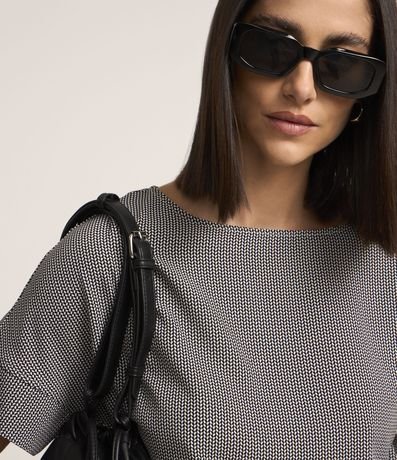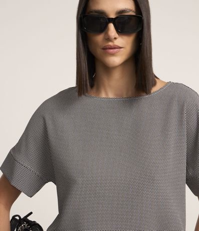 Ref: Blusa de mangas curtas com cavas em crepe com decote redondo com estampa geométrica.