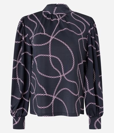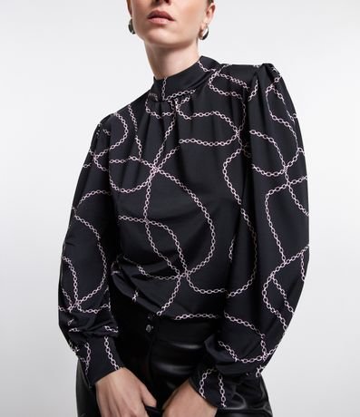 Blusa em Jersey com Manga Bufante e Estampa Correntes