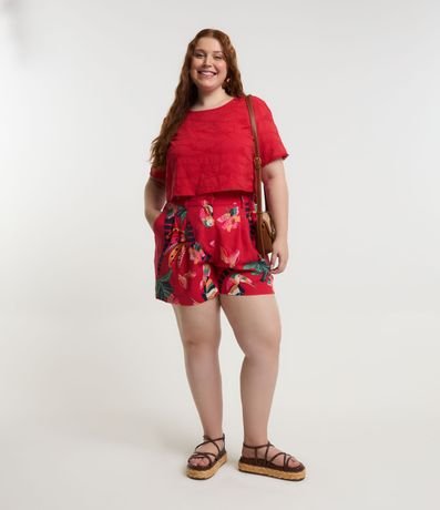 Ref: Blusa plus size confeccionada em laise com pequenos furos vazados e mangas curtas. Possui abertura por gota atrás gola.