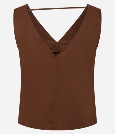 Blusa sem mangas, confeccionada em liocel, com decote V e costas decotadas com faixa fina nas costas e pregas abaixo do busto. Este produto possui viscose certificada em sua composição, além de ter sido produzido através de processos mais sustentáveis, sendo ambientalmente mais responsável.
