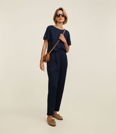 Ref: Blusa feminina, confeccionado em malha piquet, com viscose certificada na composição. A peça também conta com gola redonda, mangas curtas e detalhe na barra.