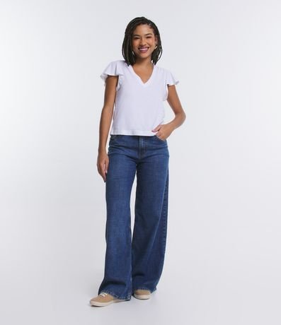 Blusa em Meia Malha com Decote V e Mangas Soltinhas