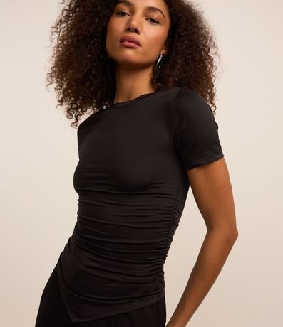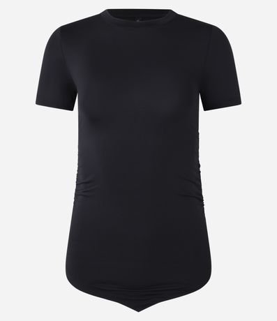 Ref: Blusa de mangas curtas confeccionada em microfibra leve com gola redonda e barra pontiaguda.