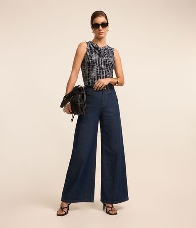 Blusa sem mangas confeccionada em microfibra leve com decote degagê e estampa geométrica diferenciada.