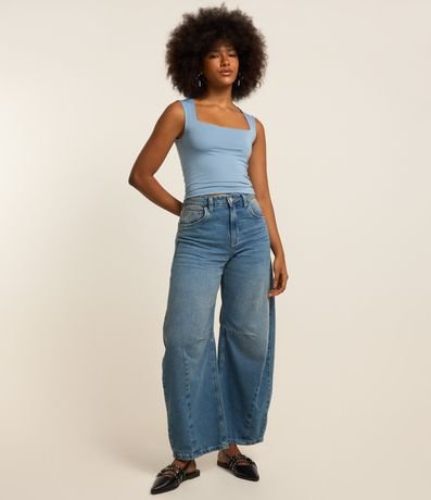 Ref: Blusa sem manga, confeccionada em microfibra leve e com decote quadrado.