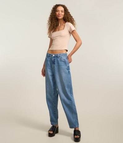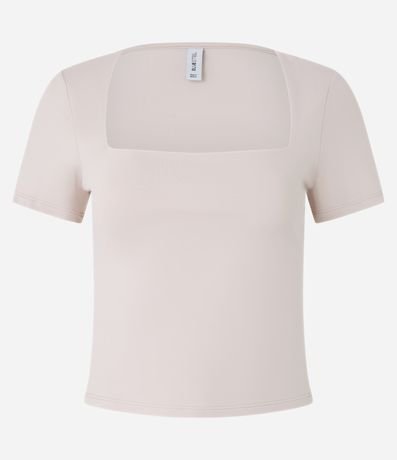 Blusa manga curta, confeccionada em microfibra leve e com decote quadrado.