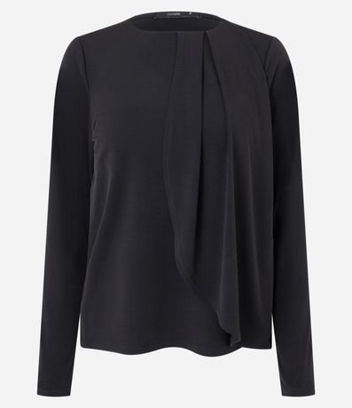 Blusa em Microfibra com Prega Frontal e Sobreposição