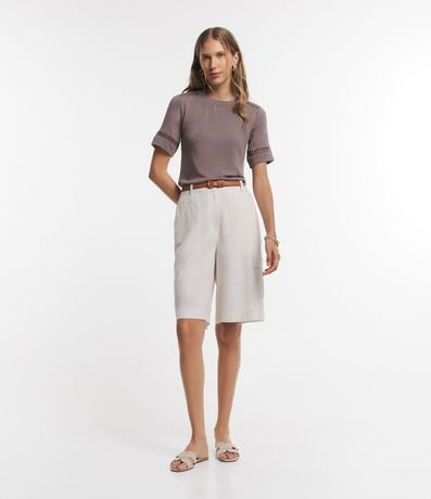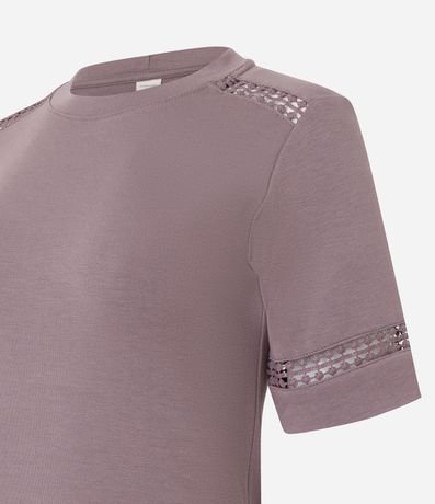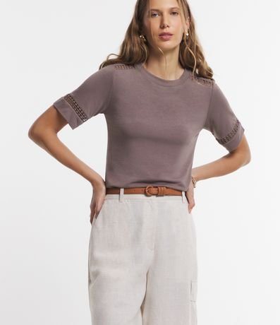 Ref: Blusa em moletinho, com gola redonda e mangas curtas. A peça possui entremeios na manga e detalhes no ombro.