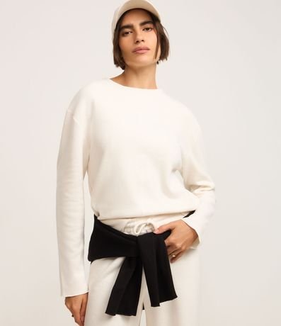 Ref: Blusa feminina confeccionada em moletinho com algodão mais sustentável na composição. A peça tem golinha média, mangas longas e friso frontal. Básica e versátil, dá vontade de ter uma de cada cor!