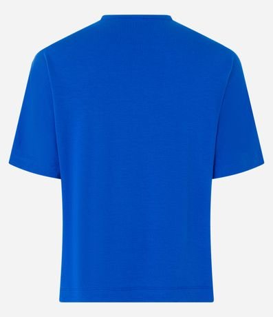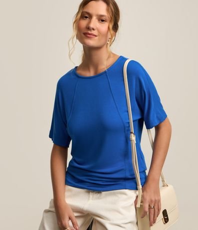 Blusa feminina, confeccionada em moletinho, com recortes frontais, mangas curtas e gola redonda.