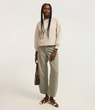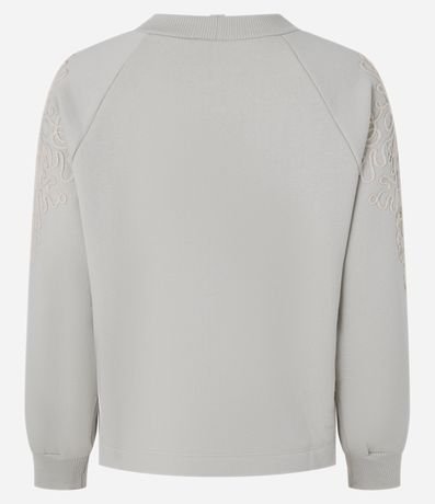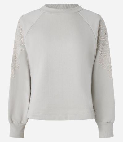 Blusa em Moletom com Bordados no Ombro e Mangas