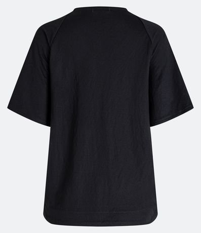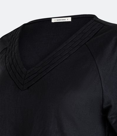 Blusa em orly com decote V trabalhado, manga curta e sem estampa.