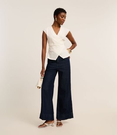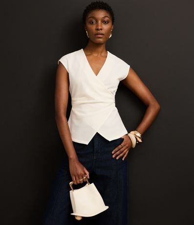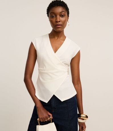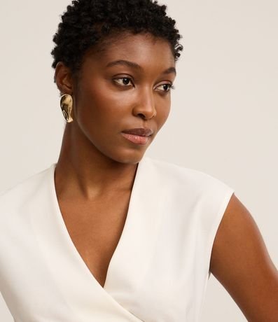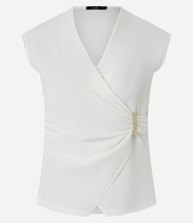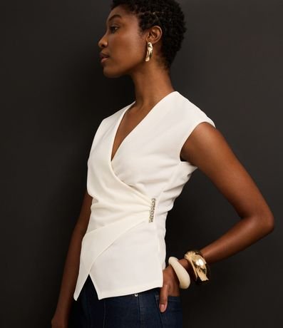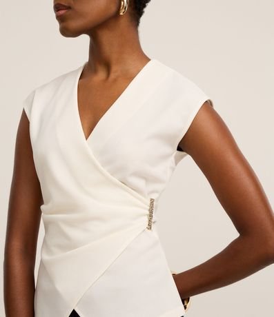 Ref: Blusa sem mangas, confeccionada em orly, com decote V transpassado com grampo metalizado na lateral. Este produto foi fabricado através de processos mais sustentáveis, sendo ambientalmente mais responsável.