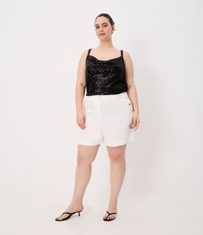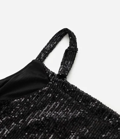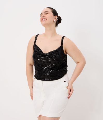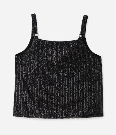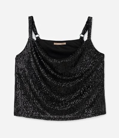 Ref: Blusa de lantejoulas com alças reguláveis e decote degagê.