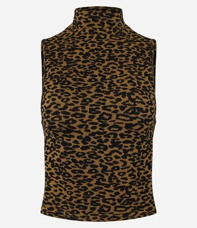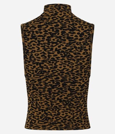 Ref: Blusa sem manga com golinha alta, confeccionada em poliamida, seamless e com estampa animal print, oncinha.