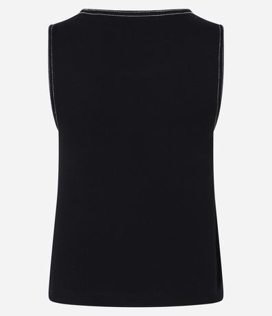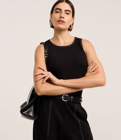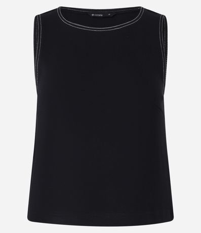 Ref: Blusa sem mangas, confeccionada em ponto roma com viscose mais sustentável, com rola redonda e alças largas. Peça tem costura em listras duplas na gola e nas alças.