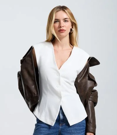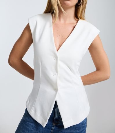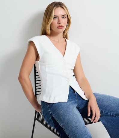 Blusa em Ponto Roma com Decote em V e Fechamento por Botões