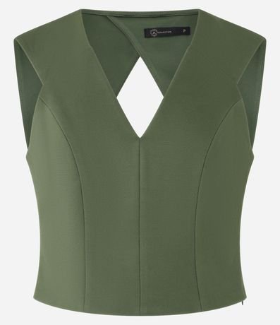 Ref: Blusa sem mangas, confeccionada em ponto roma com viscose mais sustentável, com decote V no busto e costas decotadas em V invertido e transpassado. Possui fechamento lateral, bem sutil, por zíper, além de recortes de pences frontais.