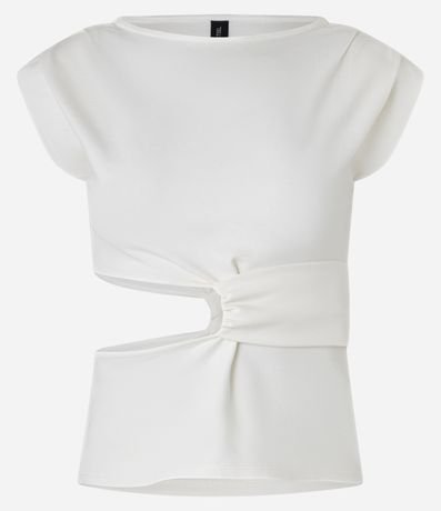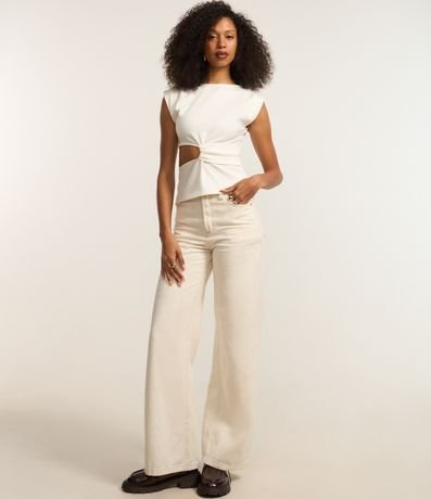 Ref: Blusa confeccionada em ponto roma composto por viscose mais sustentável. A peça sem mangas tem ombros com pregas e recorte lateral com faixa franzida.