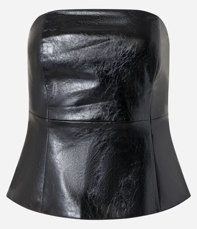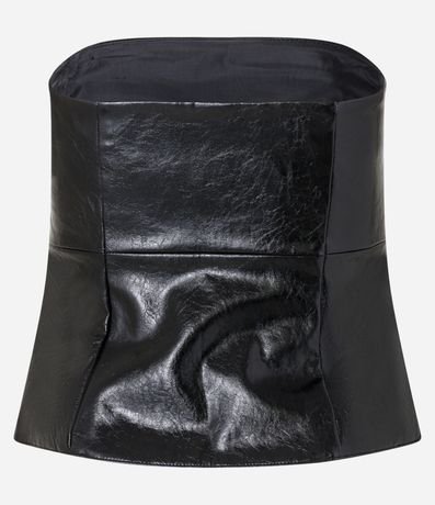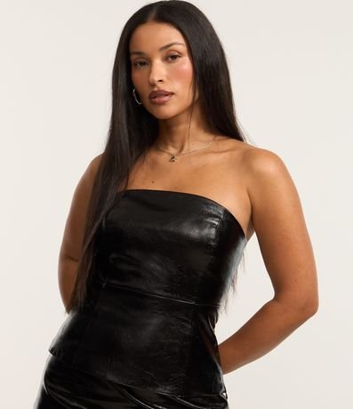 Ref: Blusa feminina confeccionada em material sintético, sem alça, corsetada e com zíper lateral para fechamento.