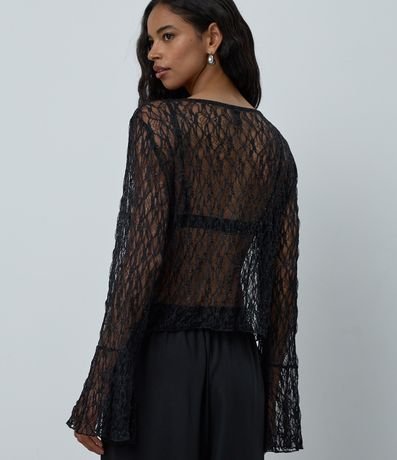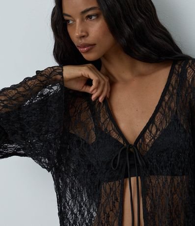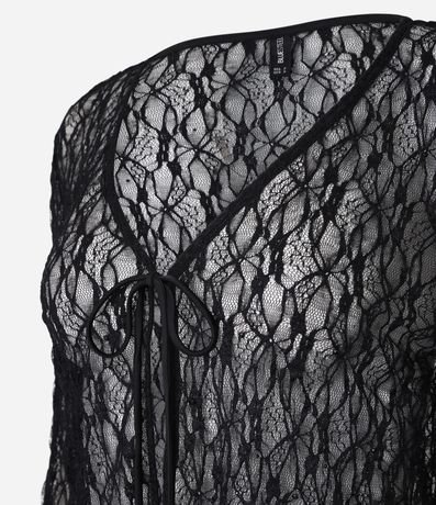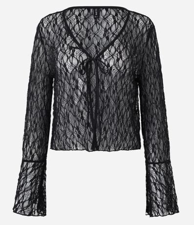 Ref: Blusa em renda com transparência, amarração frontal e aplicações de brilho, ideal para compor looks modernos e sofisticados para a noite. Possui mangas longas amplas, acabamento delicado e caimento leve que valoriza o visual. Peça versátil para sobreposições elegantes e cheias de estilo.