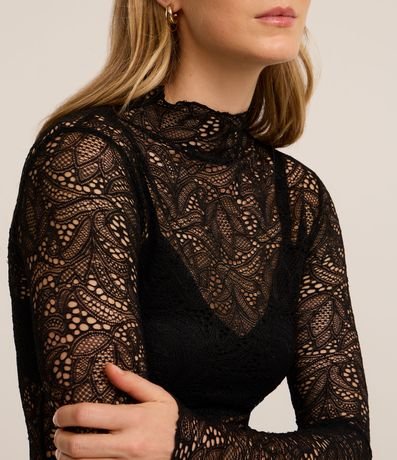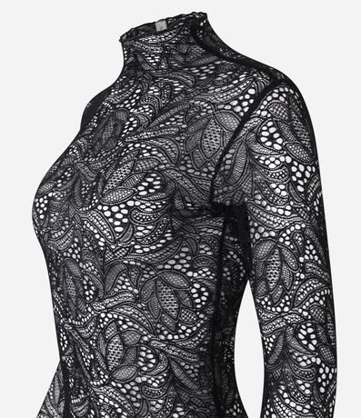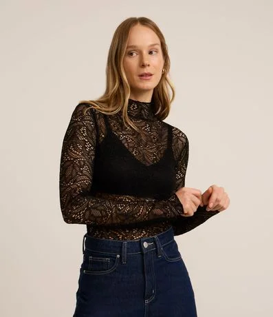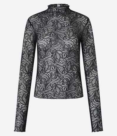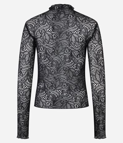 Ref: Blusa manga longa, confeccionada em renda texturizada, com transparência e produzida através de boas práticas ambientais.