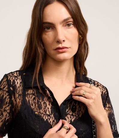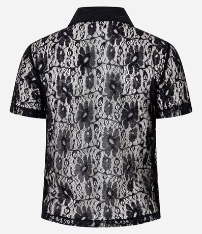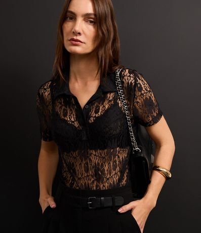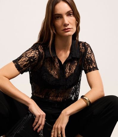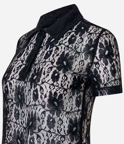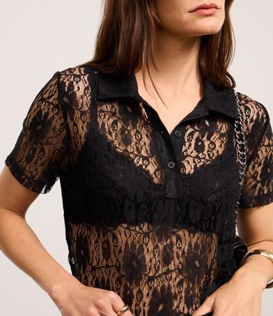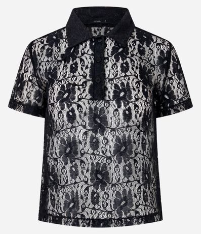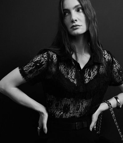 Ref: Blusa de mangas curtas, confeciconada em renda, com gola polo com botões na vista e textura de flores. Peça com leve transparência. Este produto foi fabricado através de processos mais sustentáveis, adotando boas práticas ambientais.