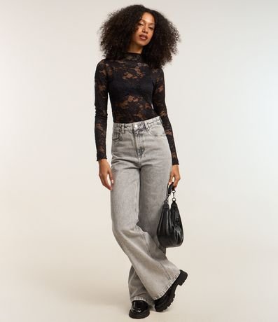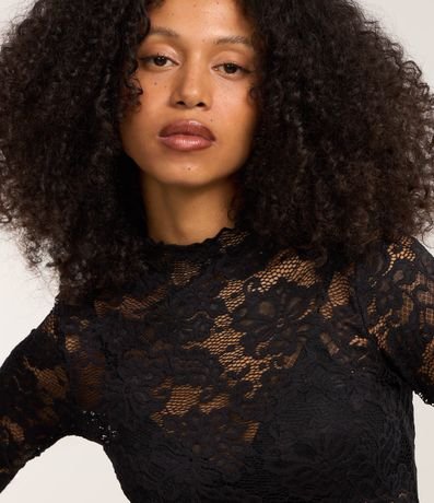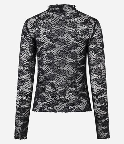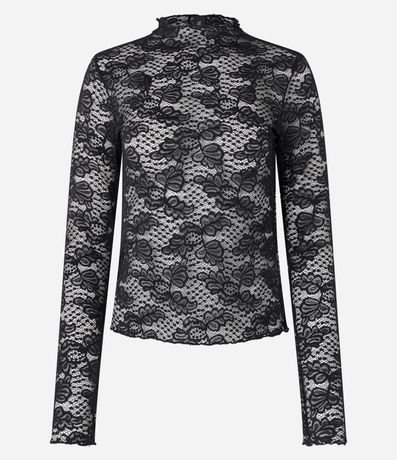 Ref: Blusa manga longa, confeccionada em renda floral e golinha alta.
