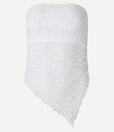 Blusa em Renda Tomara que Caia com Ponta Assimétrica