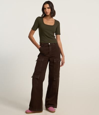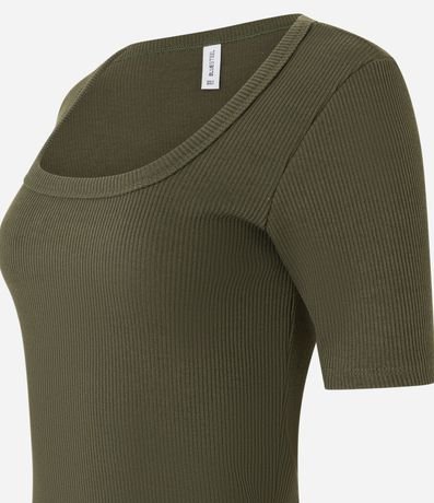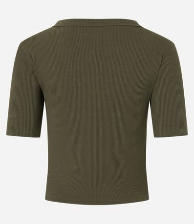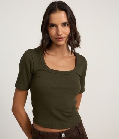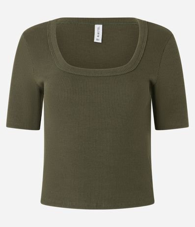 Blusa manga curta, confeccionada em ribana com leve textura e decote quadrado.