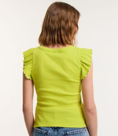 Ref: Blusa feminina confeccionada em ribana, com golinha redonda, babadinhos nas cavas, viés contrastante e sem estampa.
