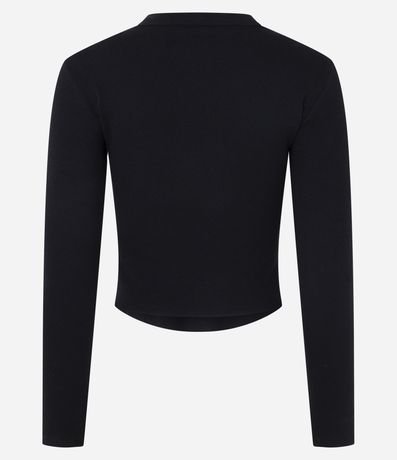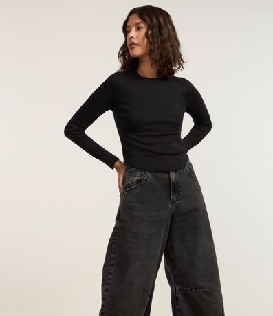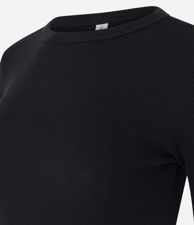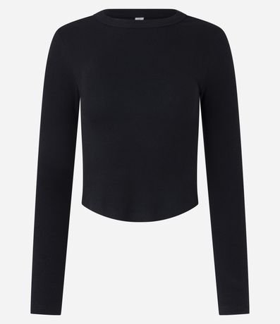 Blusa confeccionada em ribana de algodão certificado. A peça tem gola redonda, mangas longas e barra arredondada.