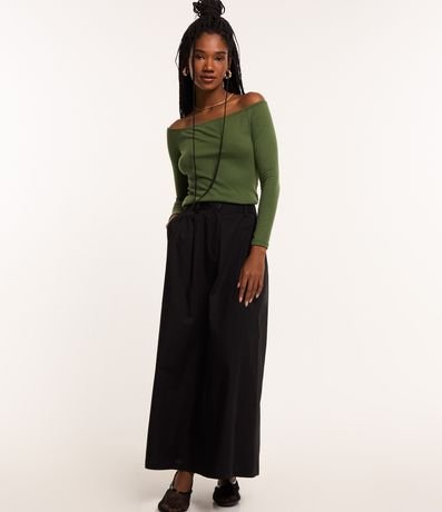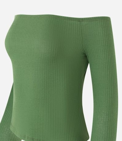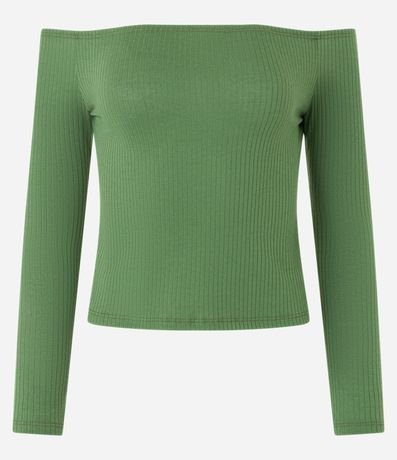 Ref: Blusa manga longa com decote ombro a ombro, confeccionada em ribana e sem estampa.