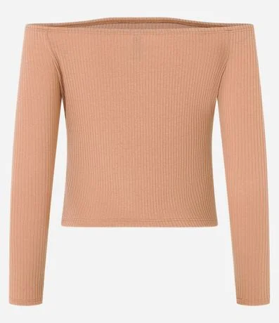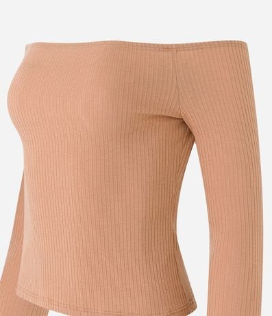 Ref: Blusa manga longa com decote ombro a ombro, confeccionada em ribana e sem estampa.