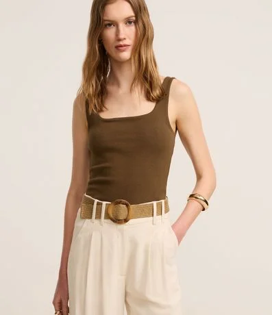 Blusa regular de alça, confeccionada em ribana com algodão bci mais sustentável e decote quadrado.