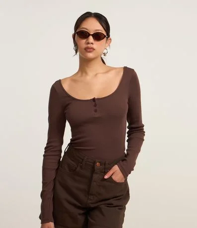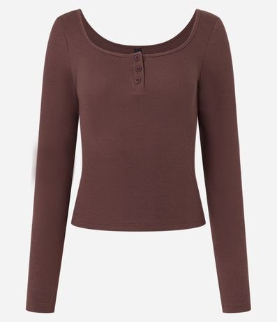 Ref: Blusa confeccionada em ribana com decote em u, botões e manga longa.