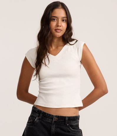 Blusa feminina confeccionada em ribana mais sustentável, possui decote v e sem estampa.