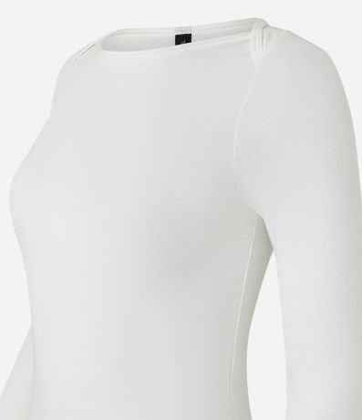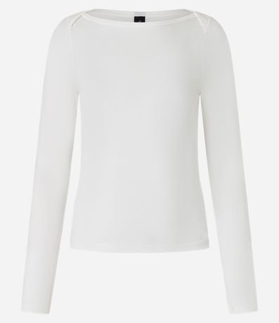 Ref: Blusa feminina, confeccionada em ribana, com gola canoa, detalhe sobreposto no ombro e superfície sem estampa.
