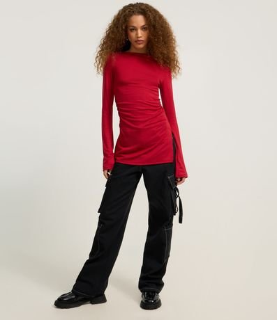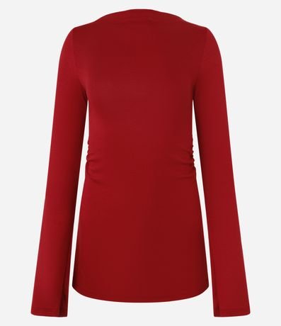 Ref: Blusa feminina justinha, confeccionada em malha ribana de viscose, com gola altinha e mangas longas. Sem estampa e possui franzido nas laterais.