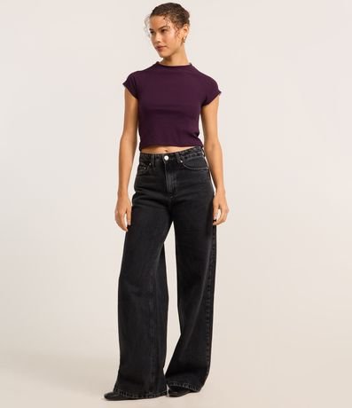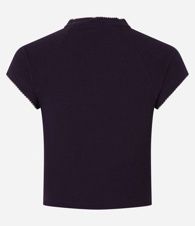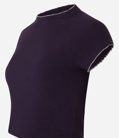 Blusa manga curta confeccionada em ribana, leve textura, friso contrastante na gola e detalhe nas mangas.