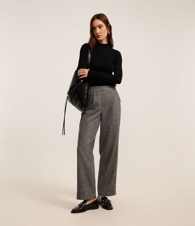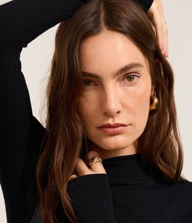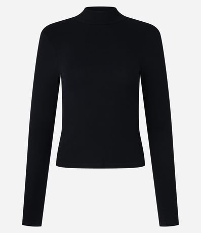 Blusa em Ribana com Gola Alta e Manga Longa
