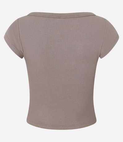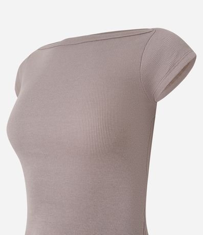 Blusa confeccionada em ribana com algodão bci, gola canoa e manga curta copinho.