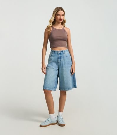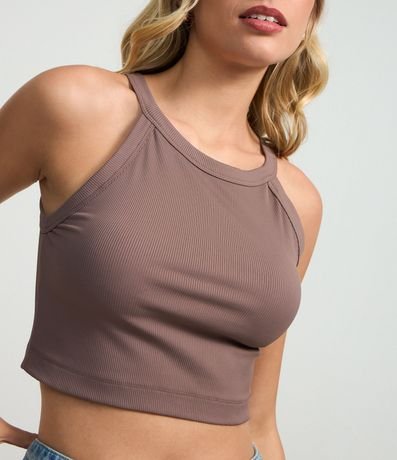 Ref: Blusa sem manga, confeccionada em ribana sem estampa e leve textura.